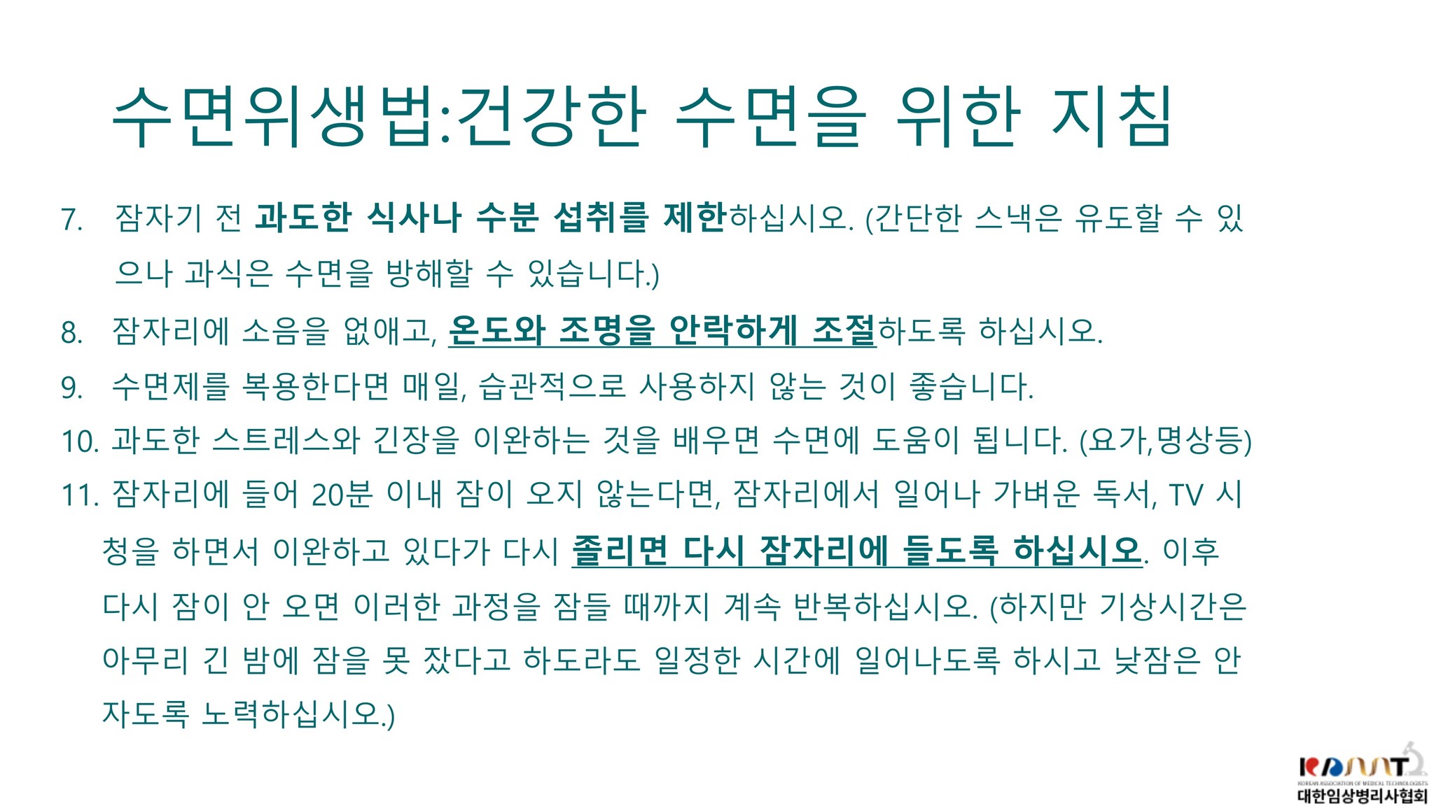 수면질환의 원인을 분석하고, 수면의 질을 향상시키기 위한 다양한 방법을 소개하며 수면장애를 겪는 환자들에게 유익한 정보를 제공