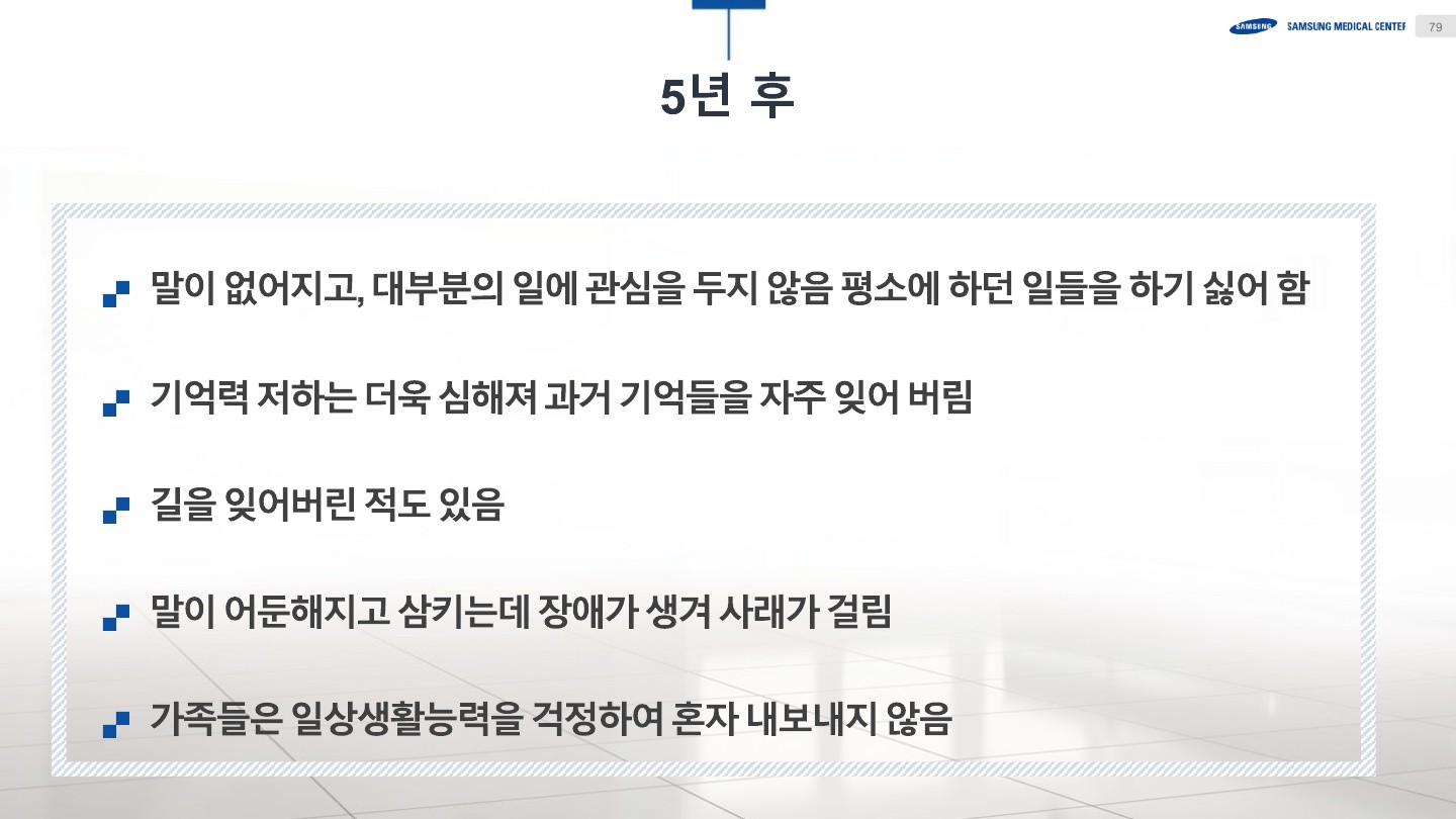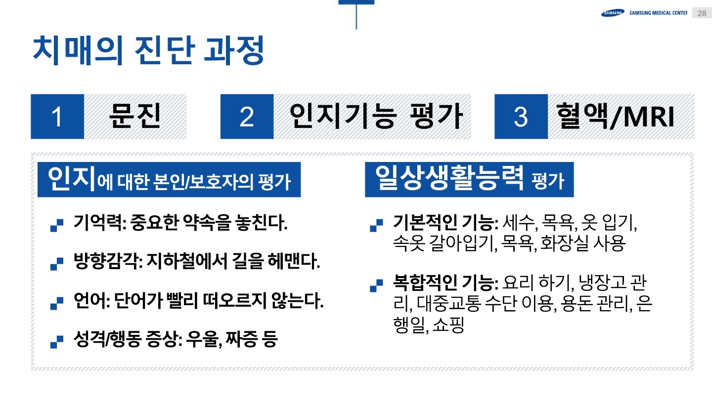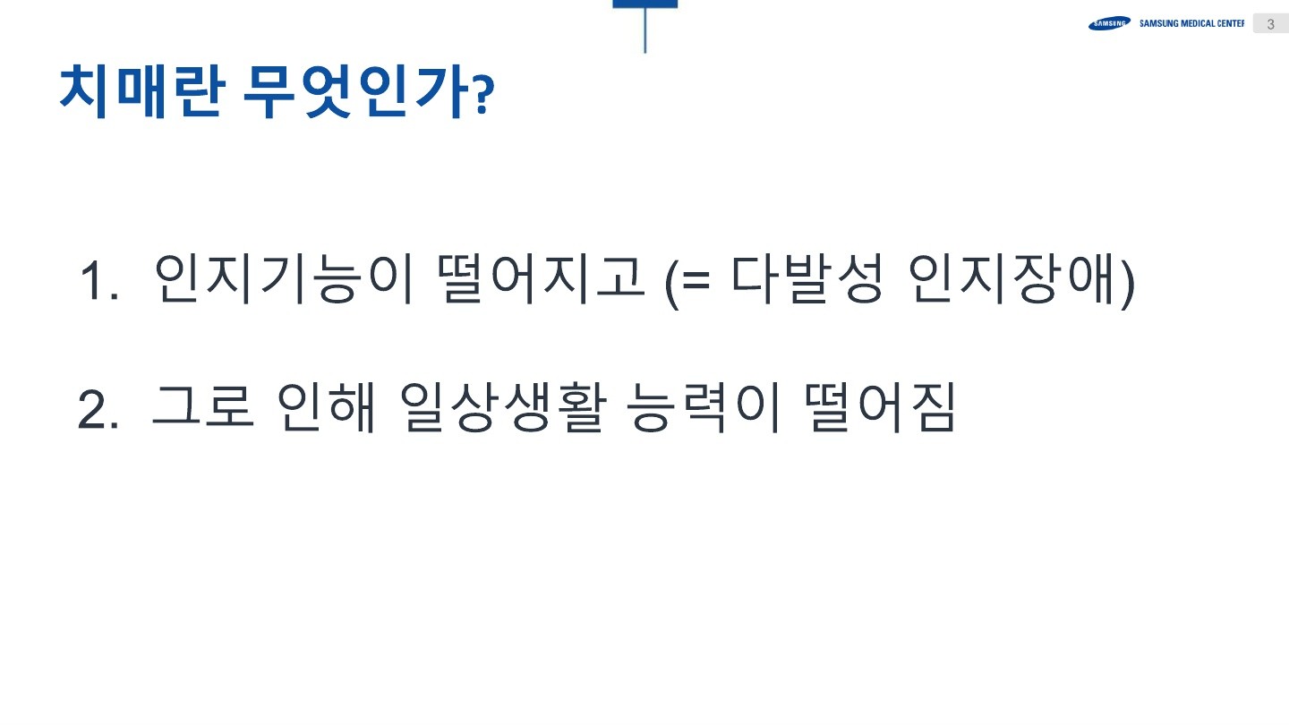 현대사회에서 중요한 건강 문제로 떠오르고 있는 치매를 주제로, 진단, 치료, 예방에 대한 깊이 있는 지식을 배우는 소중한 시간