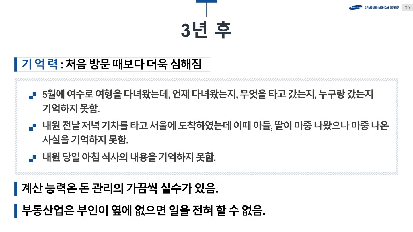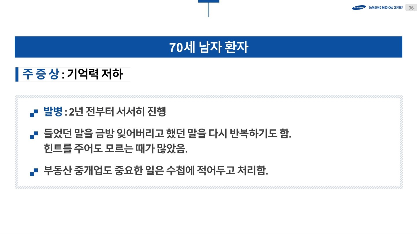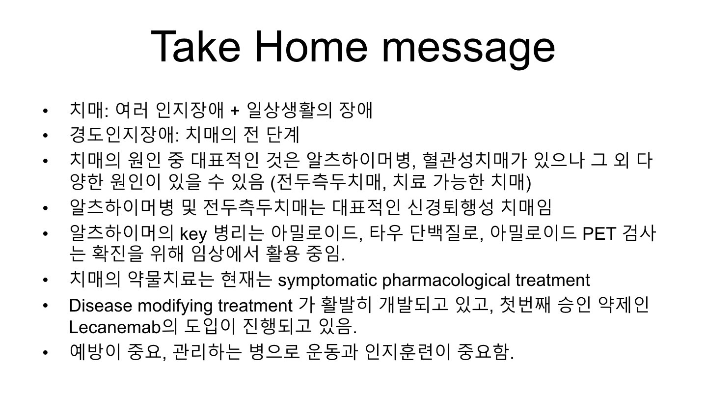 현대사회에서 중요한 건강 문제로 떠오르고 있는 치매를 주제로, 진단, 치료, 예방에 대한 깊이 있는 지식을 배우는 소중한 시간